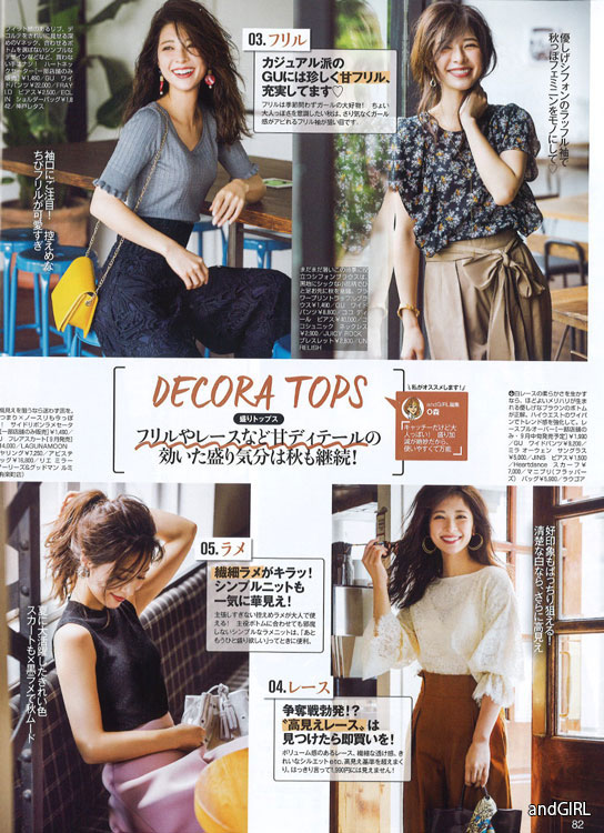 東京カレンダー/エムオン・エンターテインメント「andGIRL」/光文社「VERY」「CLASSY」「Gainer」/講談社「VOCE」 「Grazia」/幻冬舎「GINGER」/角川春樹「美人百花」/アシェット婦人画報社「25ansウエディング」「美しいキモノ」/宝島社「In Red」「Sweet」/世界文化社「MISS+」/小学館「美的」「Cancam」/セブンアンドアイ出版「saita」/主婦と生活社「CHANTO」/扶桑社「ESSE」/オレンジページ/ALBA「Regina」/NHK出版「きれいの魔法」